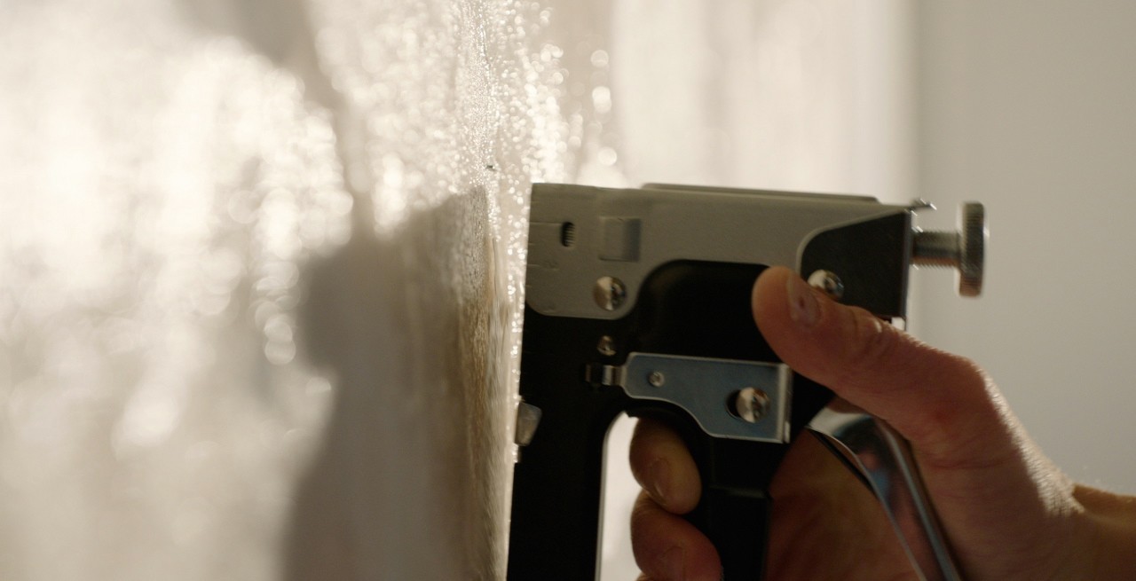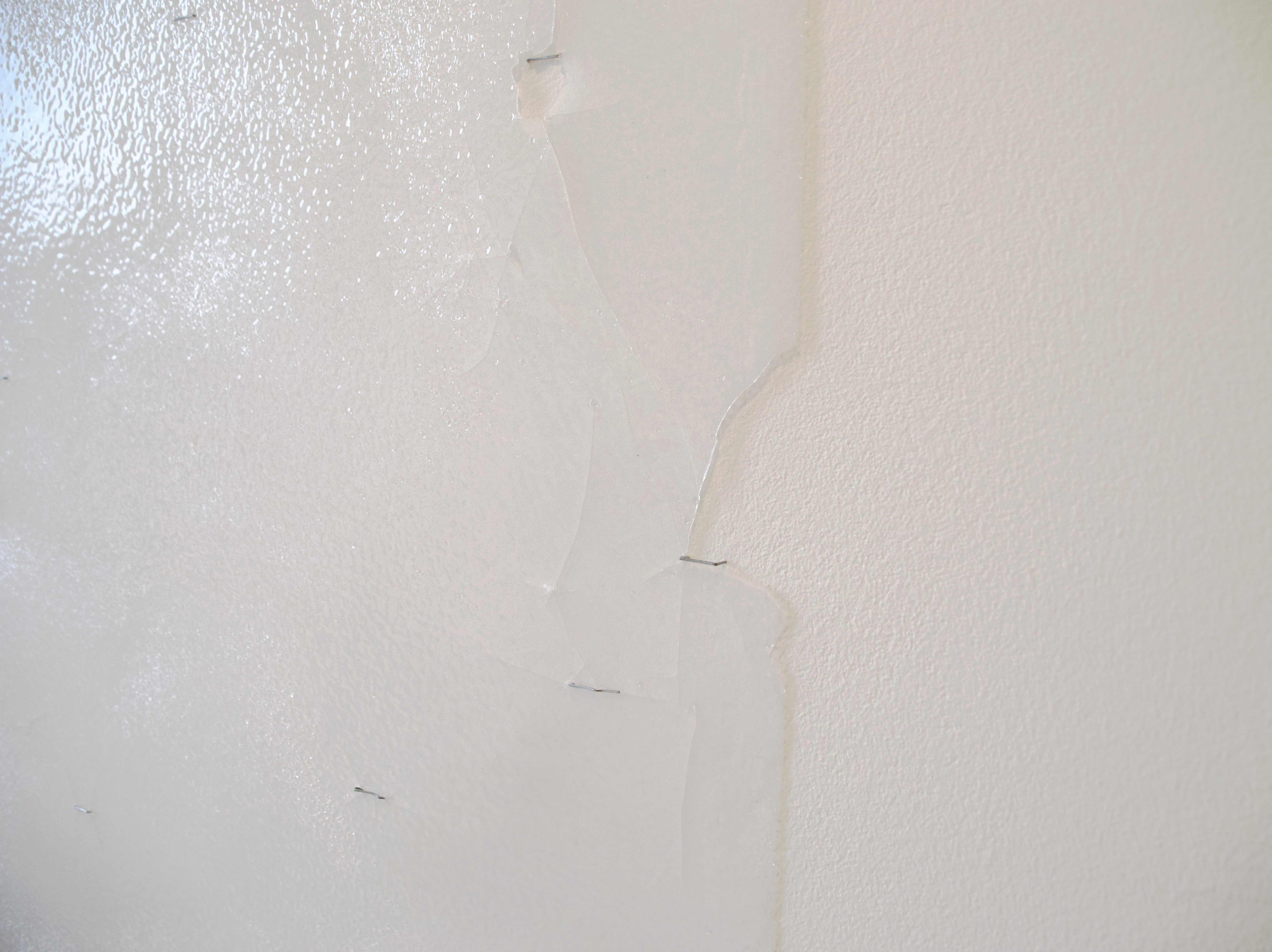 Hold On Tight is both image and performance: During the performance, a fragile glass plate is fastened to the wall with staples. The act leaves traces — the glass splinters, cracks form. What remains afterward is the fractured plate, pierced by staples, becoming a new image on the wall.